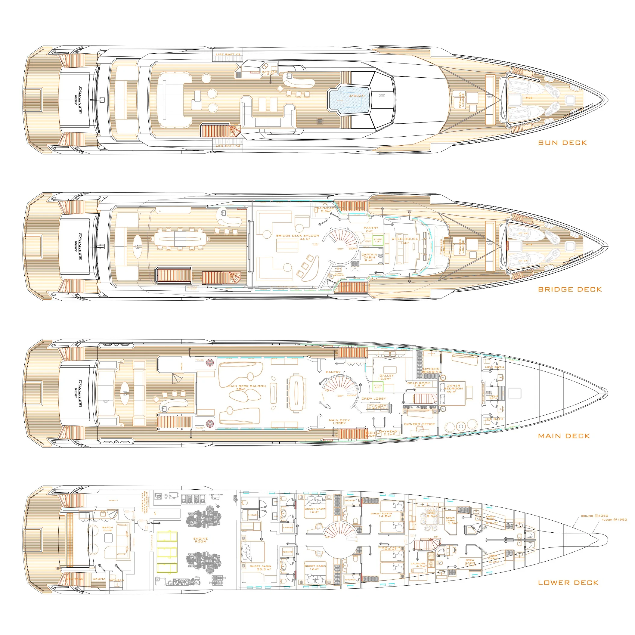 Eternal Spark is a yacht centred around charter experiences, and every feature in the interior & exterior works towards accentuating them with innovative solutions and smart implementations of amenities. These are the areas where yacht Eternal Spark excels in her innovative design, implementing cutting-edge amenities & the latest trends of yacht décor.